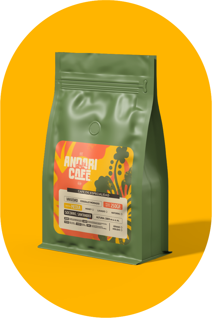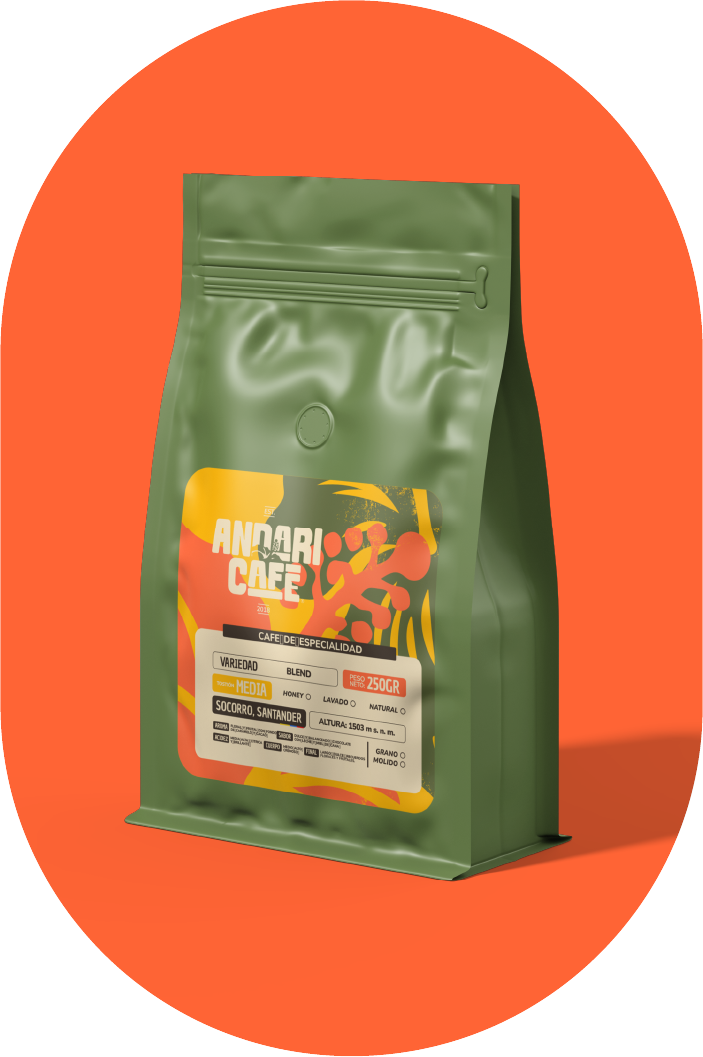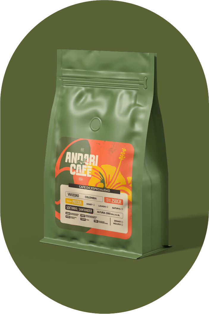 COMPRAR AHORA Cada nota cuidada para mantener un sabor memorable CÓMO LOS PREPARAMOS COLOMBIA SOCORRO, SANTANDER DESDE $38.000 - $55.000Rango de precios: desde $38.000 hasta $55.000 Ver detalles COGOLLO MORADO SOCORRO,SANTANDER DESDE $38.000 Ver detalles CASTILLA SOCORRO,SANTANDER DESDE $38.000 Ver detalles BLEND SOCORRO,SANTANDER DESDE $38.000 Ver detalles En Andari Café, los sabores florecen desde una tierra viva y aromática. Desde Socorro, Santander, creamos experiencias donde el café, la naturaleza y el origen se expresan en cada sorbo. CÓMO LOS PREPARAMOS